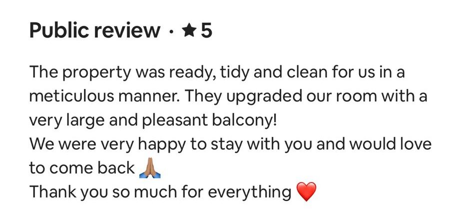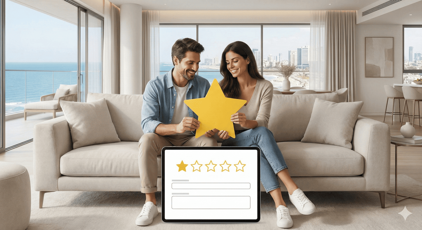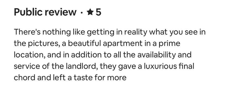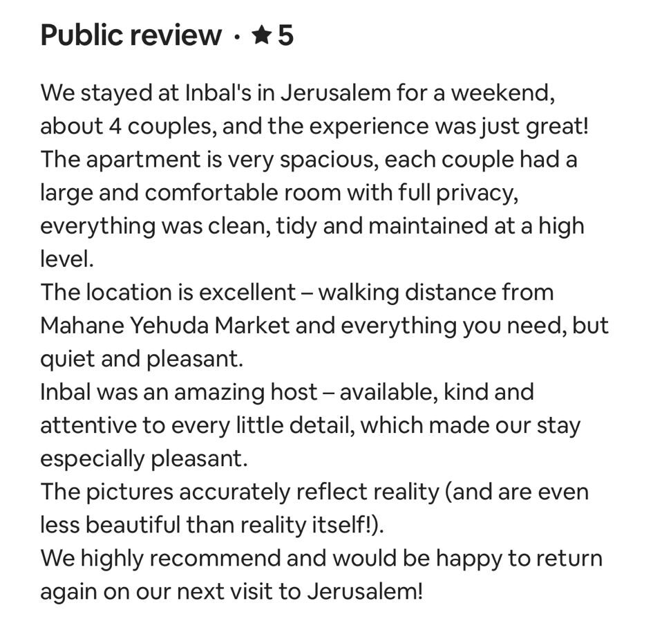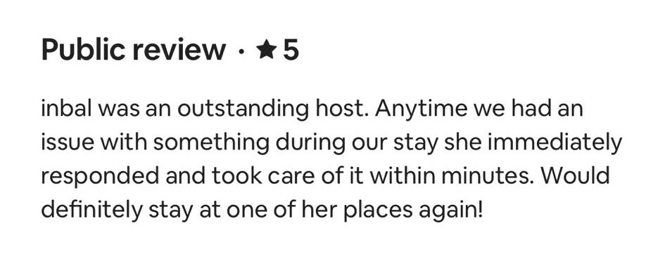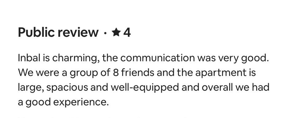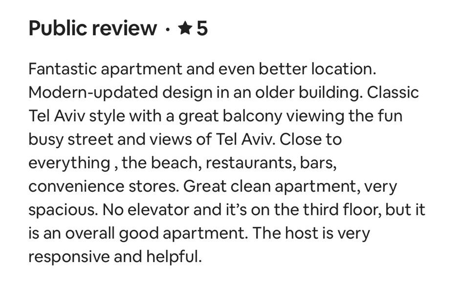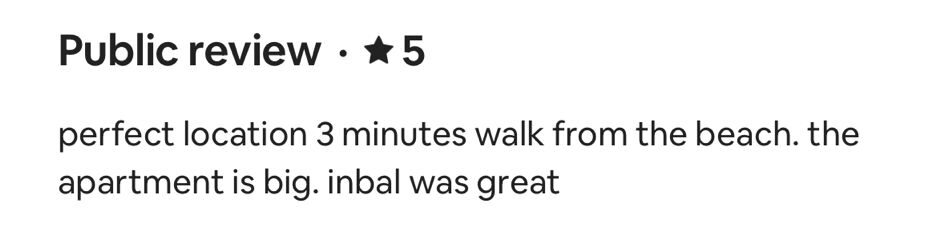 EXCELLENT Based on 164 reviews Posted on דיאנה גלינקיTrustindex verifies that the original source of the review is Google. היינו בדירה הסופ״ש באילת 61 ובאמת היה מדהים. דירה מרווחת ממש והמחיר באמת זול לתמורה שקיבלנו. כיף לראות שיש דירות כאלו, אין ספק שנחזור להתארח שוב אצל נמרוד!Posted on נויה שולTrustindex verifies that the original source of the review is Google. הגענו לחופשה בתל אביב ולצערינו המקום בו תכננו לשהות נעלם. למזלינו הרב הגענו לנמרוד המלאך שקלט אותנו, ארגן מיטות נוספות לבקשותינו, היה זמין לכל פניה בכל שעה ודאג שהכל מצוין. כמובן שחשןב לציין שהדירה עצמה הייתה מהממת, נקייה, מאובזרת ונעימה איך ספק שבכל פעם בה נגיע לתל אביב לא נצטרך לחפש יותר ממי לקחת כי כבר מצאנוPosted on Heli Shlomi (חלי שלומי)Trustindex verifies that the original source of the review is Google. התארחנו 6 חברות בדירה ברחוב נחמני, קודם כל עוד לפני שהגענו הבעלים היה זמין ונגיש ואדיב מאד. הדירה עצמה הייתה מהממת והכי חשוב נקייה!! הכל היה מתוקתק ומבריק, המצעים, המגבות, הריח בבית. פשוט מושלם. הוא היה זמין לכל שאלה או בקשה ובקיצור אין ספק שנחזור שוב 🤍Posted on דניאל עטיהTrustindex verifies that the original source of the review is Google. אחלה גבר נתן שירות מעולה זמין בכל שעה אפשר לסמוך עליו בכסף בהכלPosted on Shaked NachmaniTrustindex verifies that the original source of the review is Google. האירוח בדירה היה מושלם. נתחיל מזה שערב קודם להגעה קיבלנו שיחת טלפון מבעל הנכס שהודיע שמתקיימים שיפוצים ליד הדירה (דבר שהוא לא מובן מאליו בפני עצמו - יכל לתת לנו להגיע לשם מבלי להודיע, קרה לנו בעבר) ובגלל זה הוא משדרג אותנו לדירה אחרת. הדירה שקיבלנו הייתה מהממת! במיקום הרבה יותר טוב ממש על הים עם חנייה - דירה מרווחת ונקייה! ממש עם ריח של נקיון ומרגישים מיד בבית. רוצים להודות לכם על שירות מושלם - מענה מהיר ויחס אישי וחם. תודה על היושר והכנות. אם יכלנו - היינו נשארים עוד לילה.Posted on alon alonTrustindex verifies that the original source of the review is Google. Perfect apartment, centrally and perfectly located at the heart of the city. Great Jacuzzi on rooftop. Will surely come back.Posted on נתנאל אמרוסיTrustindex verifies that the original source of the review is Google. הכי טובים בתחום האירוח בתל אביב דירות ברמה גבוה ושירות מצוין