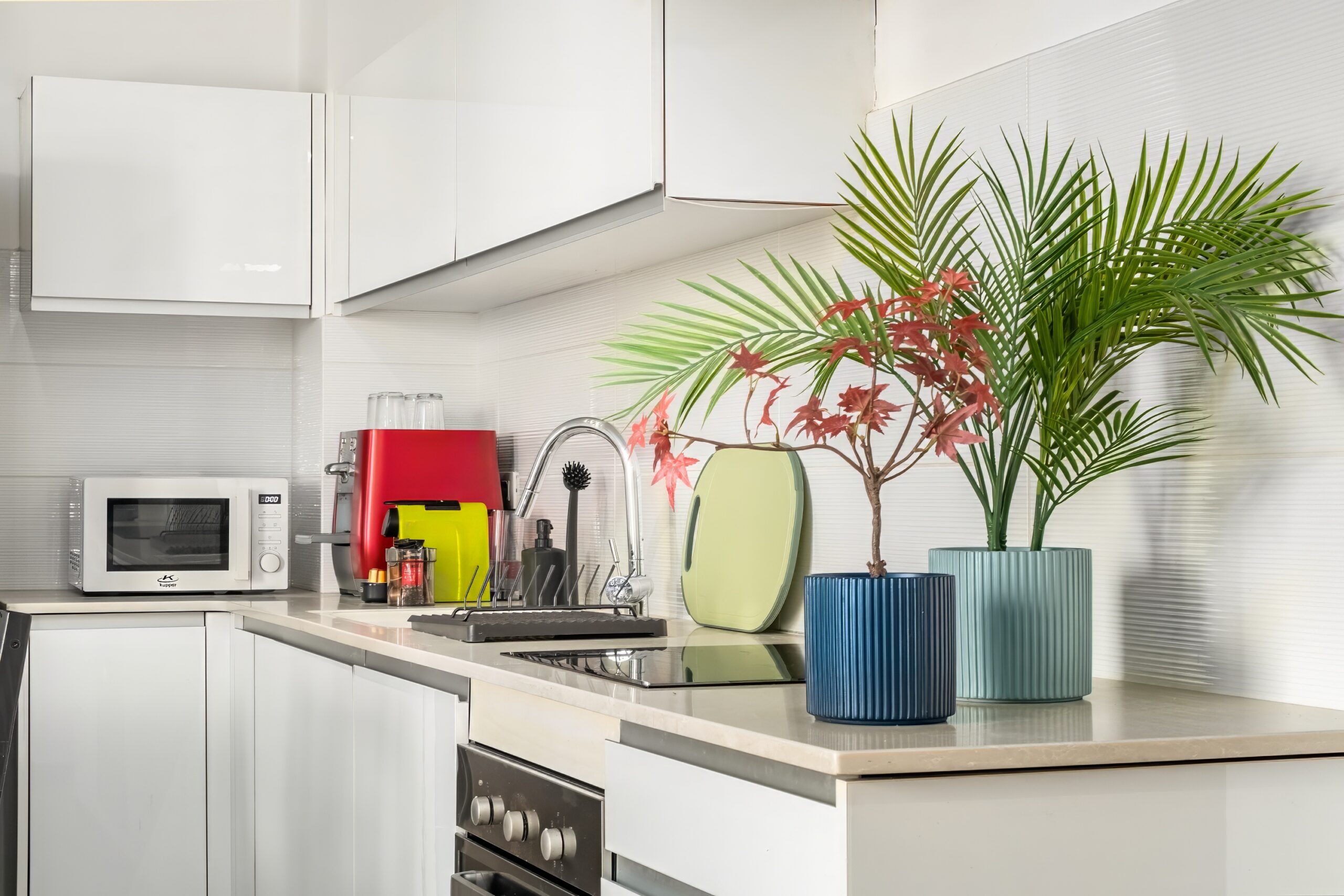 • A fully equipped kitchen with everything you need for a seamless stay—fridge, oven, stove, coffee maker, and more.