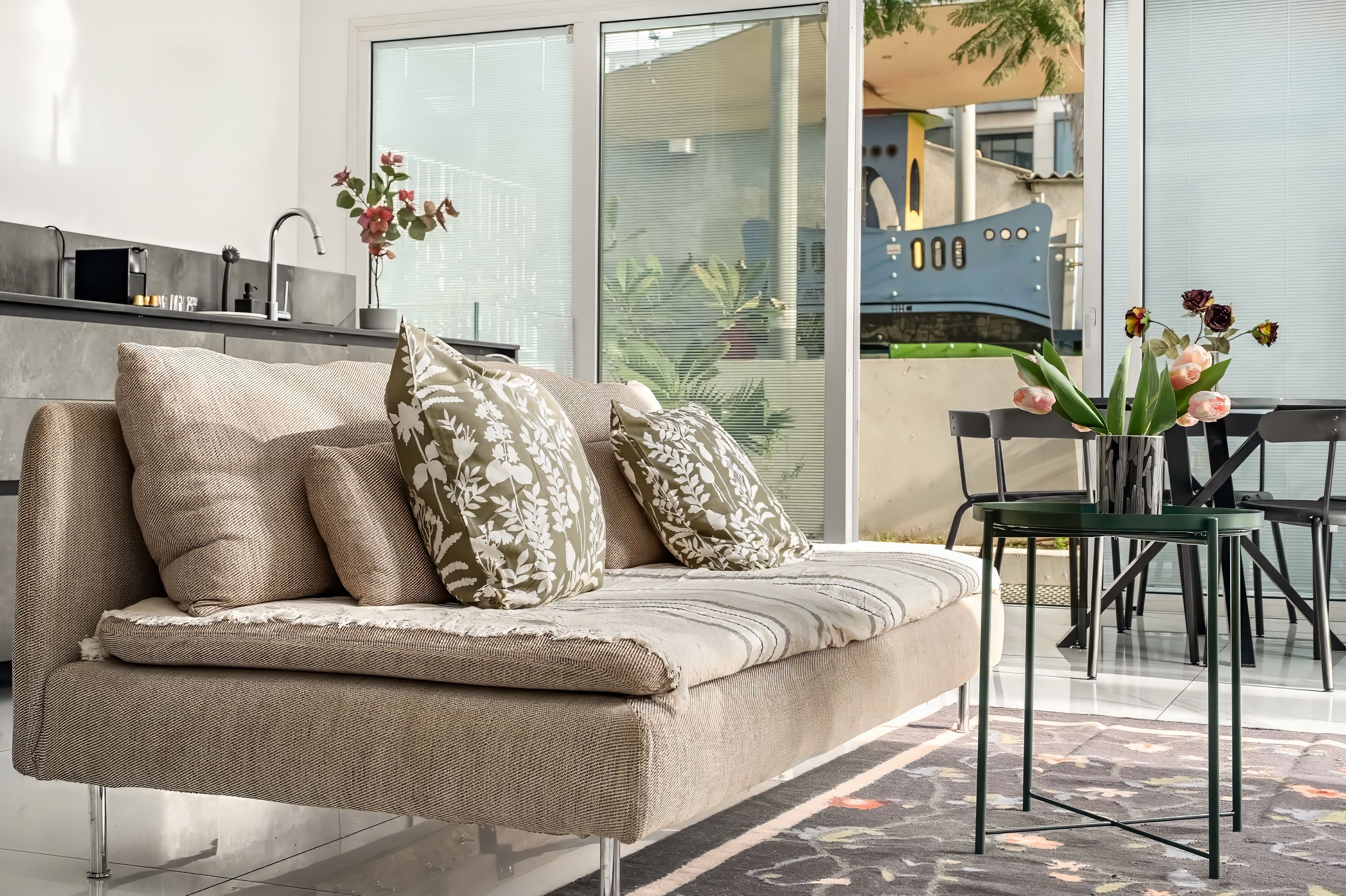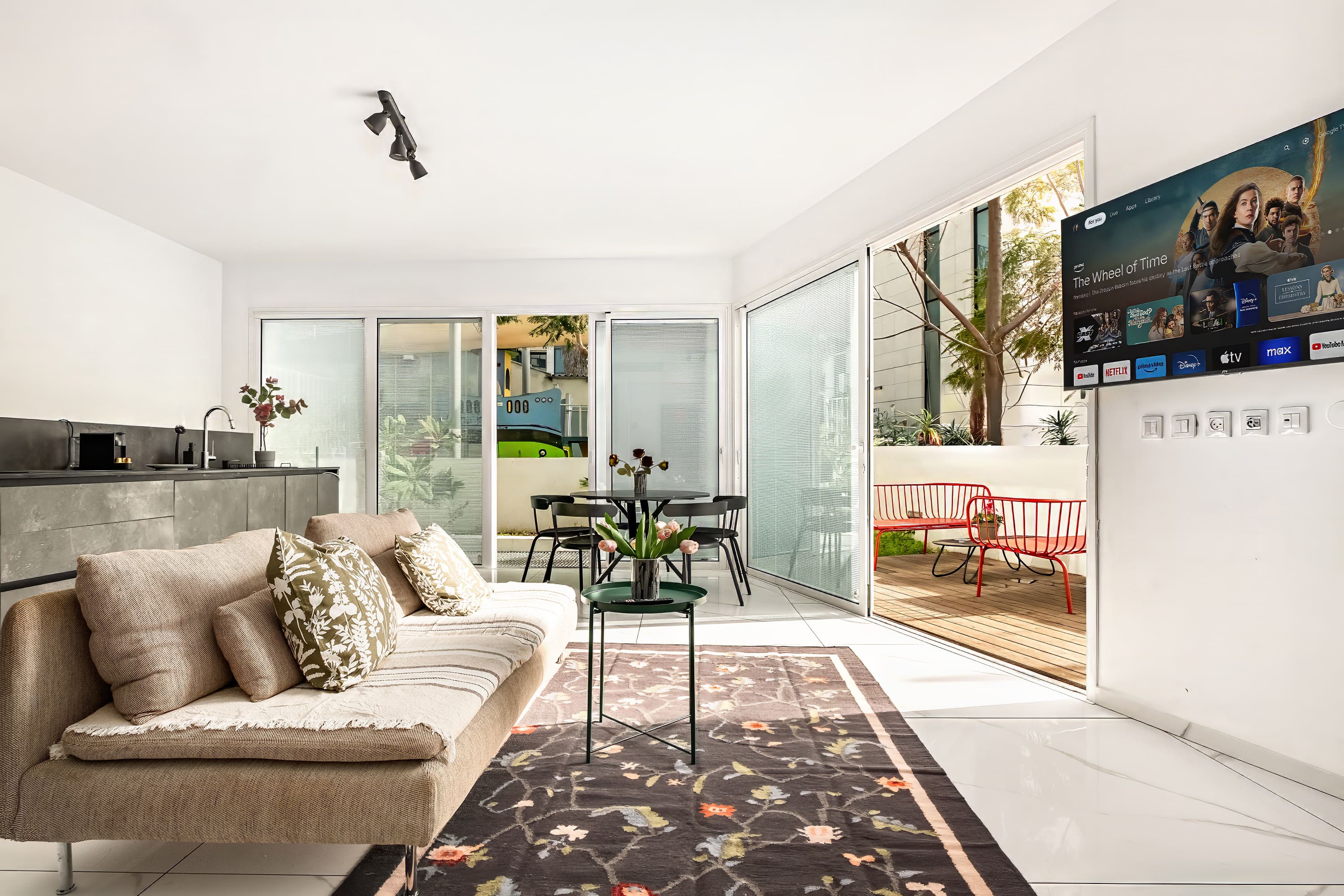 • A stylish and airy living space with a smart TV, Netflix, air conditioning, and fast Wi-Fi.
