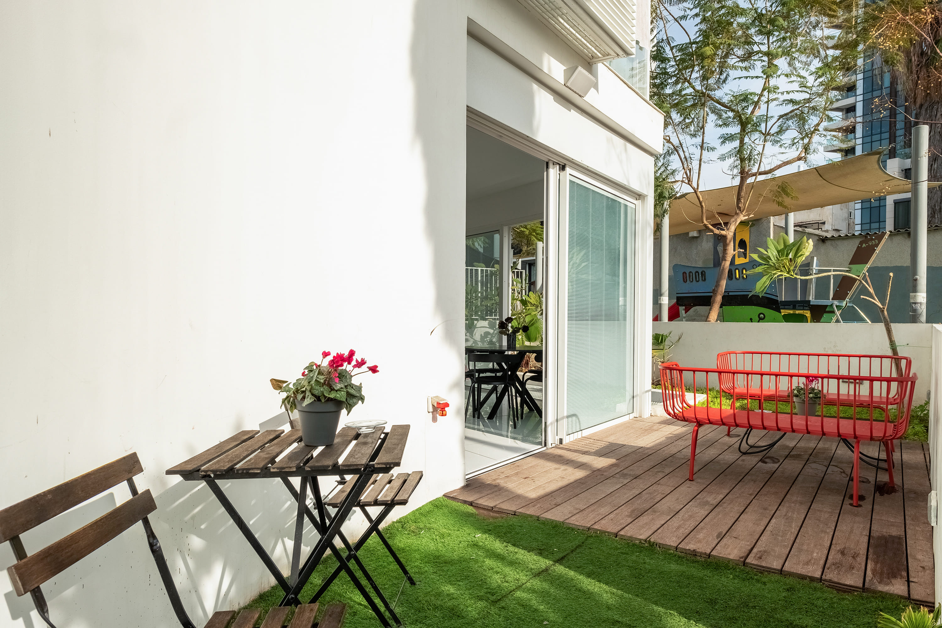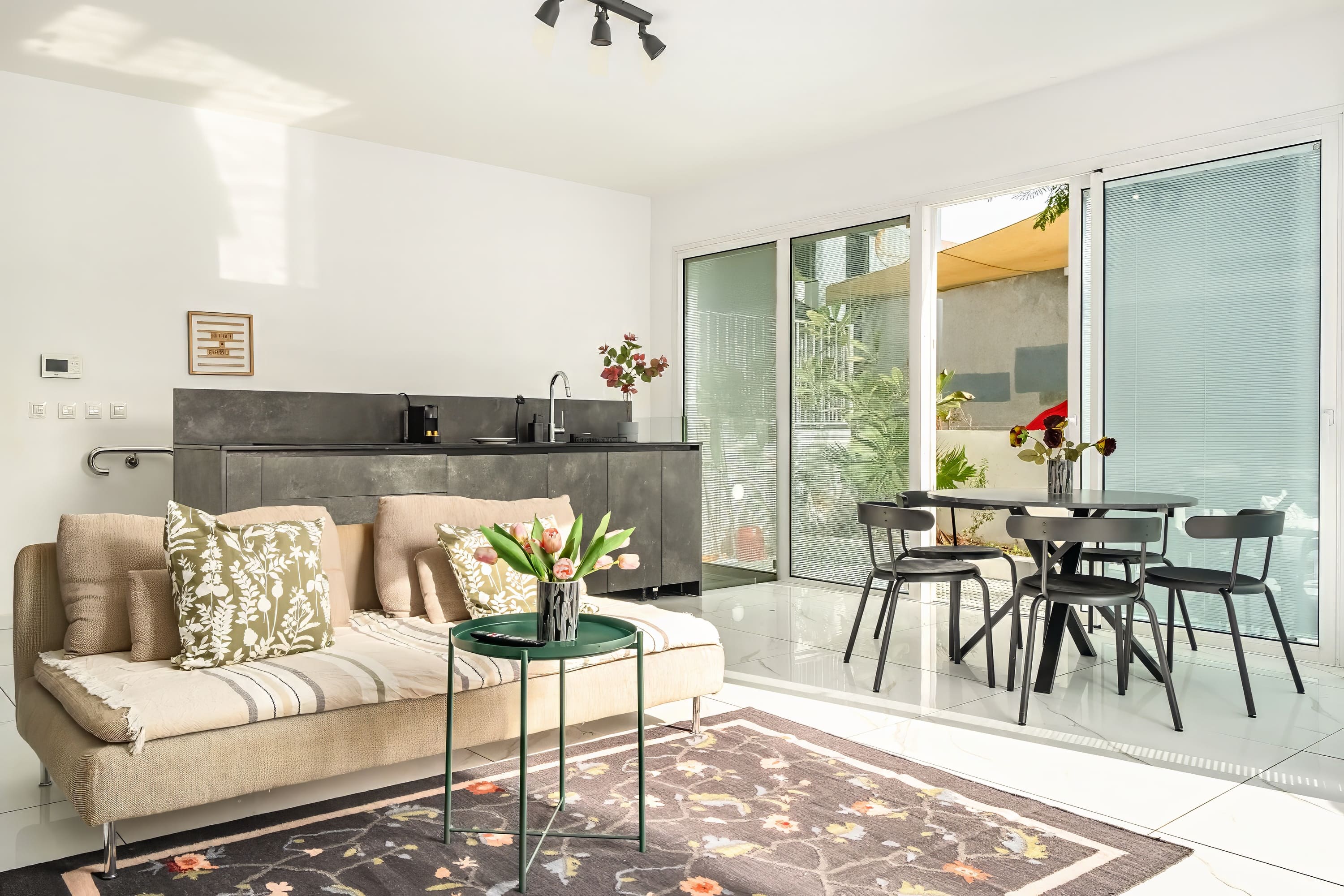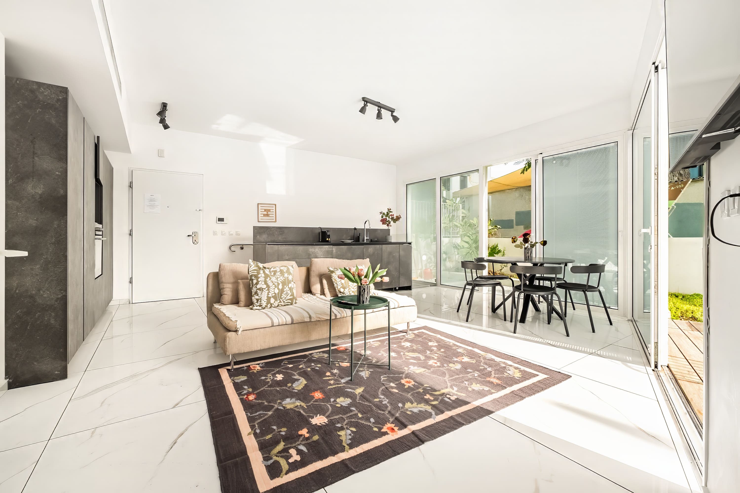 • This garden apartment is located in a new and prestigious building, offering a peaceful retreat in the middle of Tel Aviv’s vibrant energy.